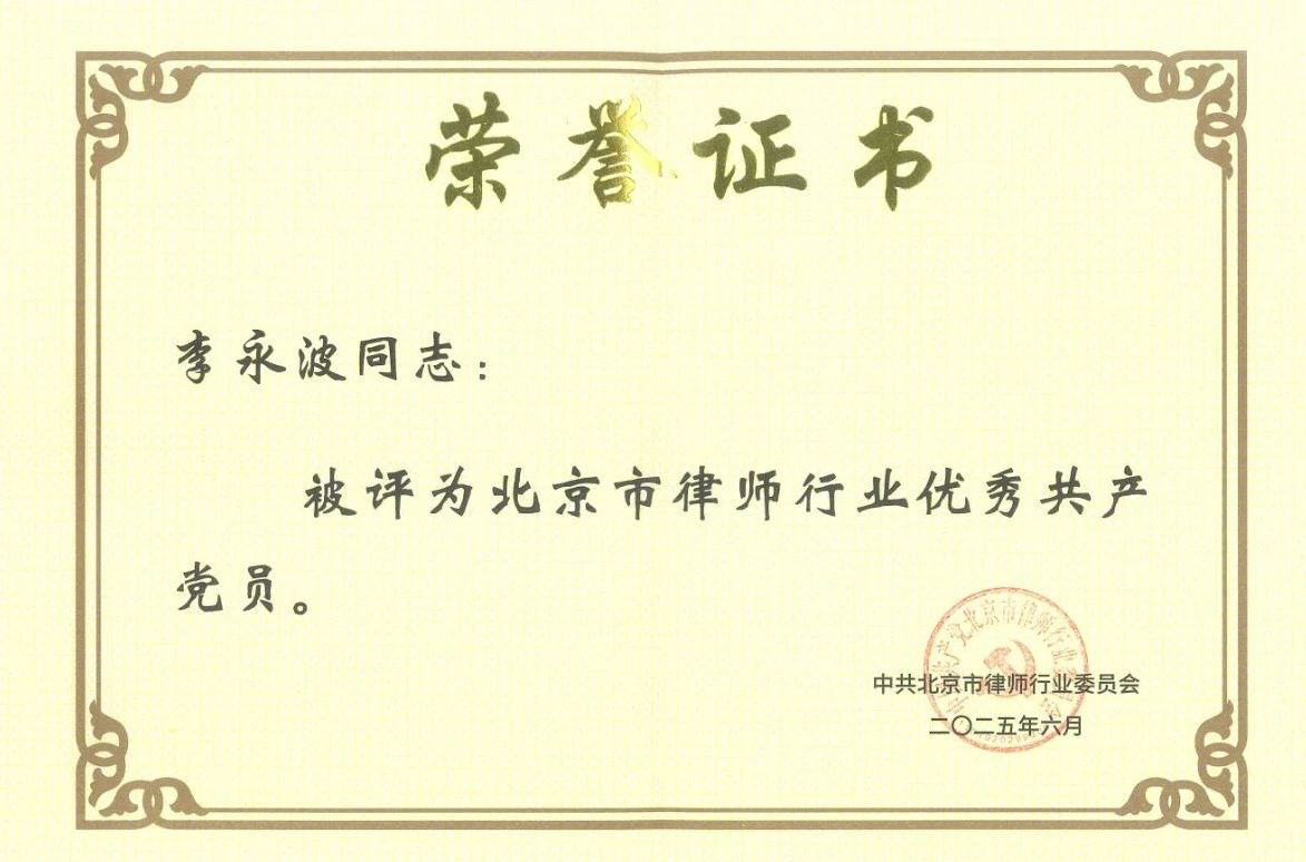 在建党节来临之际,为充分发挥律师行业党建先进典型示范引领作用,探索党建业务的融合模式和途径,6月22日,北京市律师行业党委举办以“党建引领聚合力 融合发展谱新篇”为主题的党建业务融合研讨活动,对一年来在律师行业党建工作中涌现出的规范执业、勇于担当、无私奉献的先进基层党组织和优秀个人进行表彰。中共澳客 联合支部委员会凭借卓越的党建工作成果和行业引领作用,荣获北京市“先进律师事务所党组织”称号,澳客 党支部书记、律所主任李永波被评为“北京市律师行业优秀共产党员”。